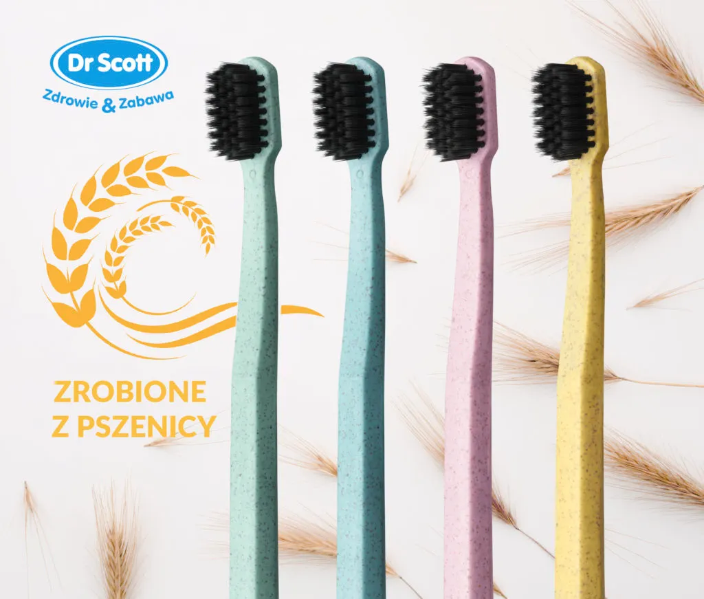 Alternatywą dla szczoteczek plastikowych są szczoteczki, które w 50% składają się z odpadów pszenicznych. Dzięki takiemu składowi minimalizujemy ilość plastiku i wykorzystujemy odpady. Słoma pszeniczna to pozostałość po zbiorze ziaren pszenicy. Tradycyjnie była traktowana jako odpad. Jednak te źdźbła nadal mają wartość. Materiał ten jest odzyskiwany i używany do produkcji. Wykorzystując słomę pszeniczną w naszych produktach kierujemy materiał ze strumienia odpadów i odzyskany surowiec wykorzystujemy do produkcji trwałych, lekkich, odpornych na tłuszcz i przecięcia oraz nadających się do kompostowania produktów, w tym szczoteczek do zębów.