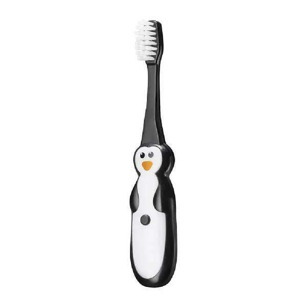 W model wbudowano minutnik, który wyznacza optymalny czas szczotkowania – po minucie dla dolnej i górnej partii zębów. Wystarczy nacisnąć jeden przycisk zlokalizowany w korpusie, a odliczanie zostanie rozpoczęte. Jego widocznym znakiem będzie miganie głowy zwierzątka. Kształt pandy lub pingwina zaciekawi najmłodszych i zachęci ich do dbania o uzębienie. Stanie się to prawdziwą atrakcją i świetną zabawą dla dziecka a czas spędzony na tak pomyślanej rozrywce to także okazja dla rodziców. Wspólne chwile w łazience mogą stać się pretekstem do codziennych domowych lekcji na temat zdrowych nawyków i dbania o higienę. Produkt spełnia wszystkie normy bezpieczeństwa.