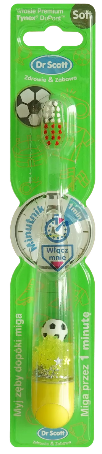 Co zrobić aby budzący sprzeciw obowiązek stał się świetną zabawą? Szczoteczka do zębów Dr Scott zmieni nudny rytuał mycia zębów w super przygodę. Migająca szczoteczka Dr Scott została zaprojektowana specjalnie w celu realizacji tego trudnego zadania.